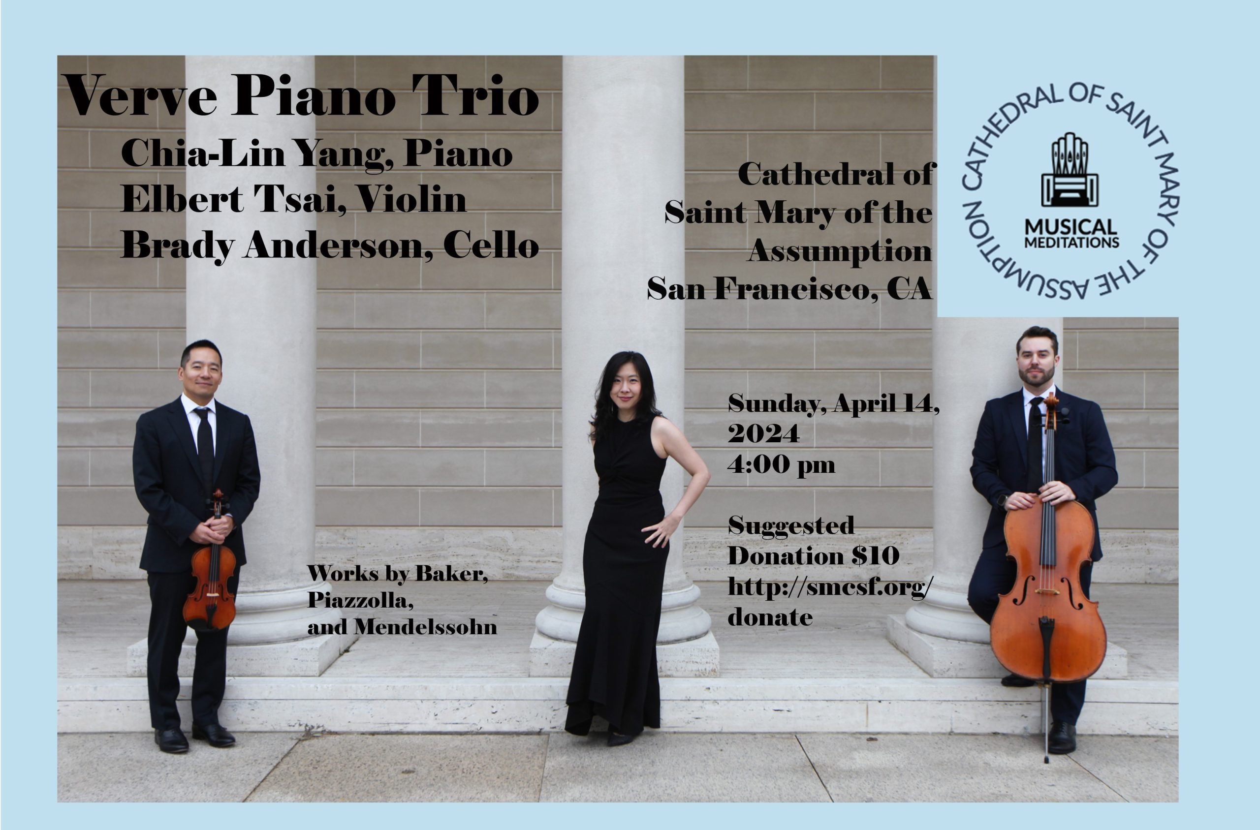 Verve Trio with Chia-Lin Yang, Piano; Elbert Tsai, Violin; and Brady Anderson, Cello. Works by Baker, Piazzolla, and Mendelssohn.