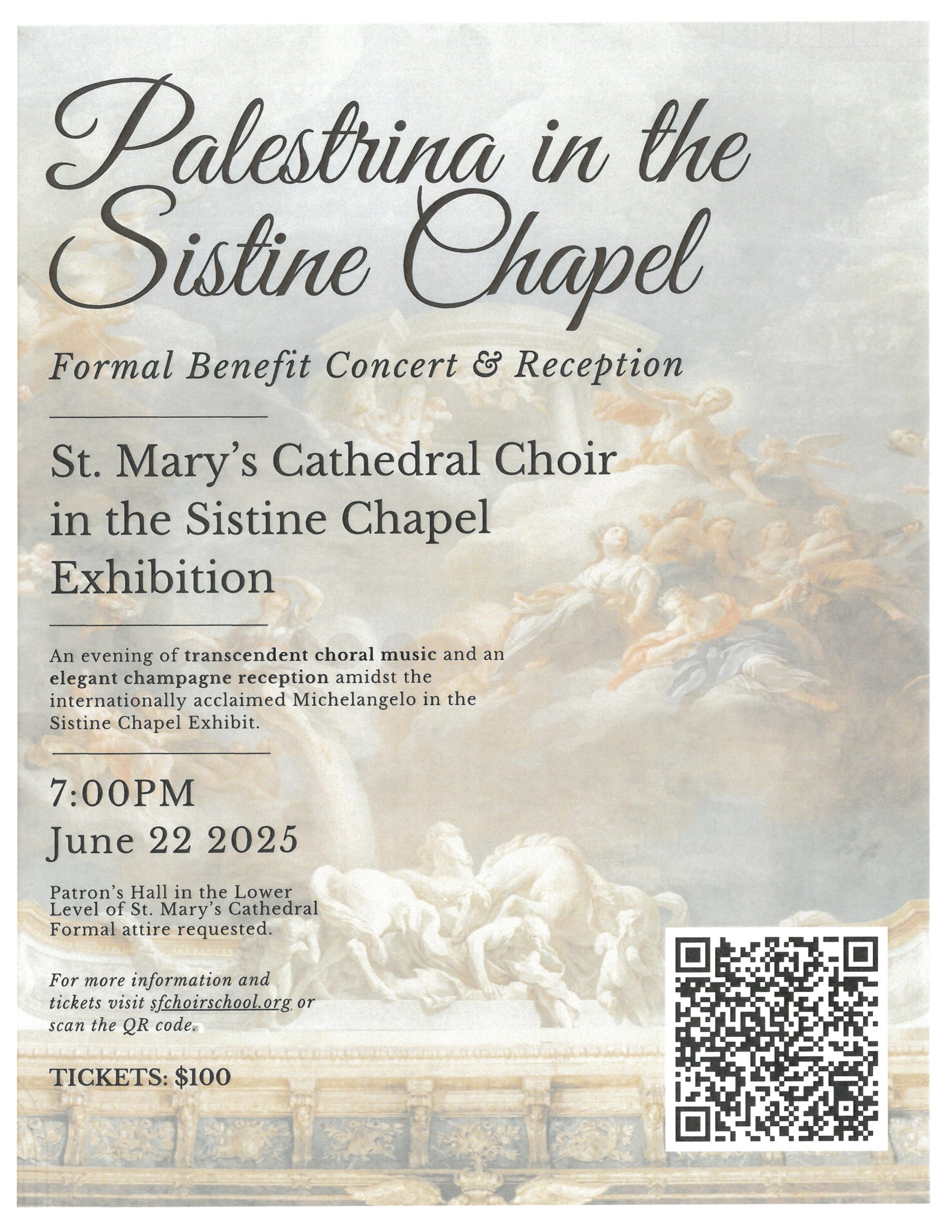 One Day only – Proceeds benefit St. Mary’s Cathedral Choir School.
